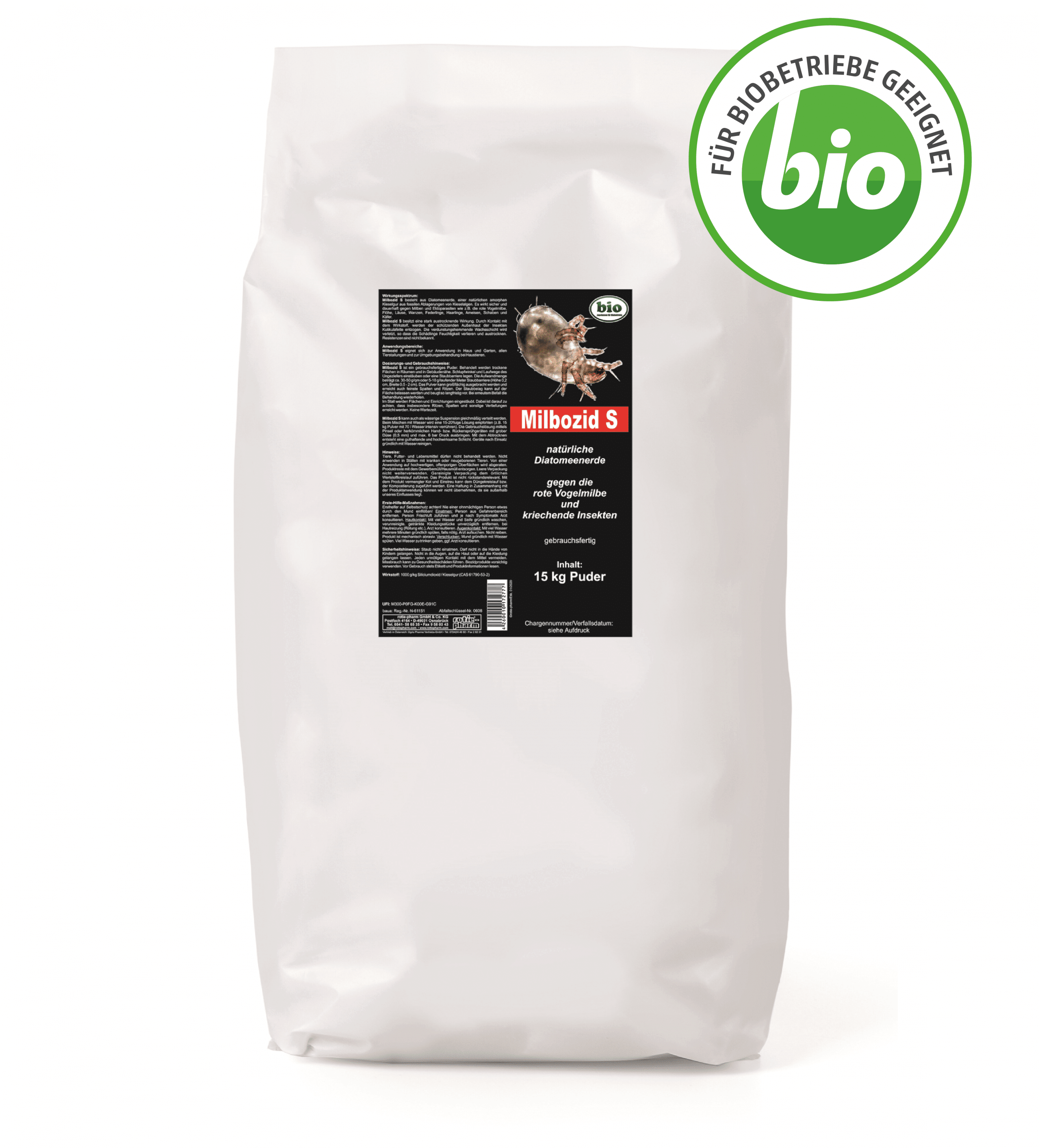 Milbozid S besteht aus Diatomeenerde, einer natürlichen amorphen Kieselgur aus fossilen Ablagerungen von Kieselalgen. Diatomeenerde wirkt sicher und dauerhaft gegen Milben und Ektoparasiten wie z.B. die rote Vogelmilbe. Milbozid S besitzt eine stark austrocknende Wirkung. Durch Kontakt mit dem Wirkstoff, werden der schützenden Außenhaut der Insekten Kutikulafette entzogen. Die verdunstungshemmende Wachsschicht wird verletzt, so dass die Schädlinge Feuchtigkeit verlieren und austrocknen. Milbozid S stellt neben ALLISAL einen zentralen Baustein in der nachhaltigen Milbenbekämpfung dar.